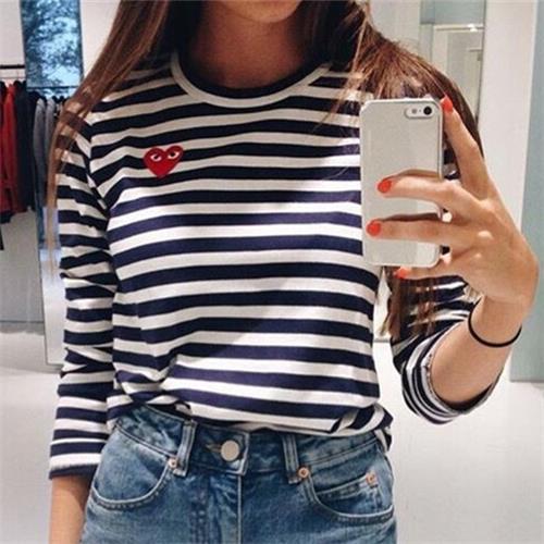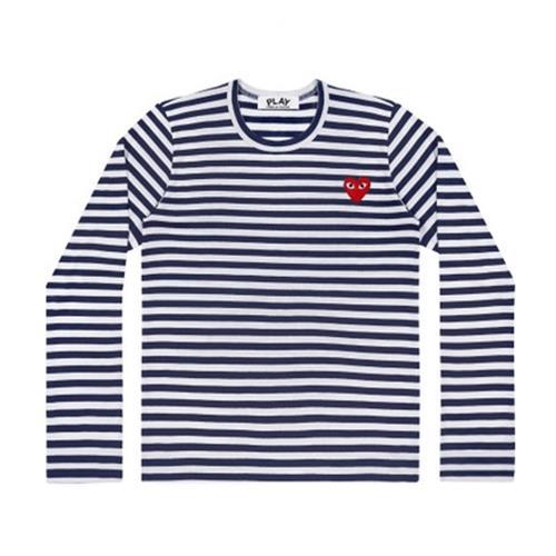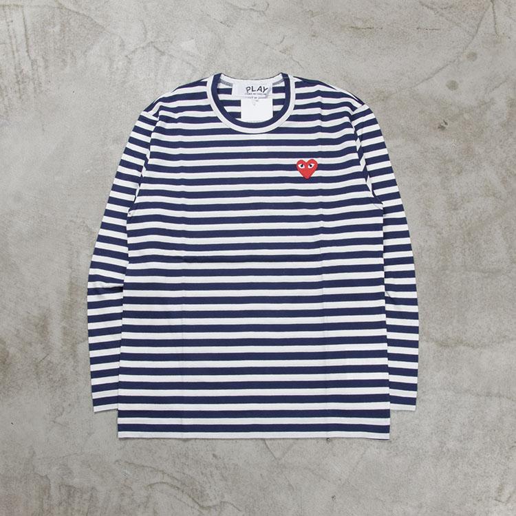这款来自CDG PLAY川久保玲的圆领长袖T,在原有深蓝色的基础上增加了白色条纹,带有海魂衫的风格。左胸前绣有精致的小红心图案,是这件看似普通的长袖T的一大亮点。做工优良,精选的纯棉面料带给你保暖且舒适的穿着感受。
