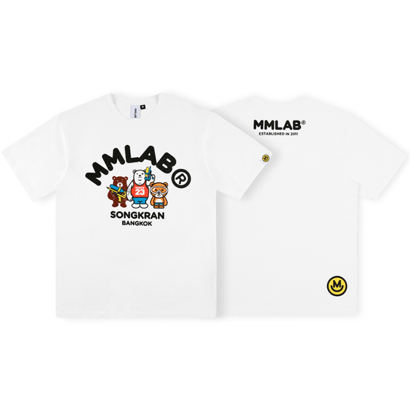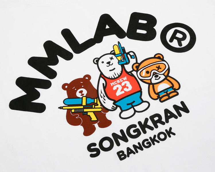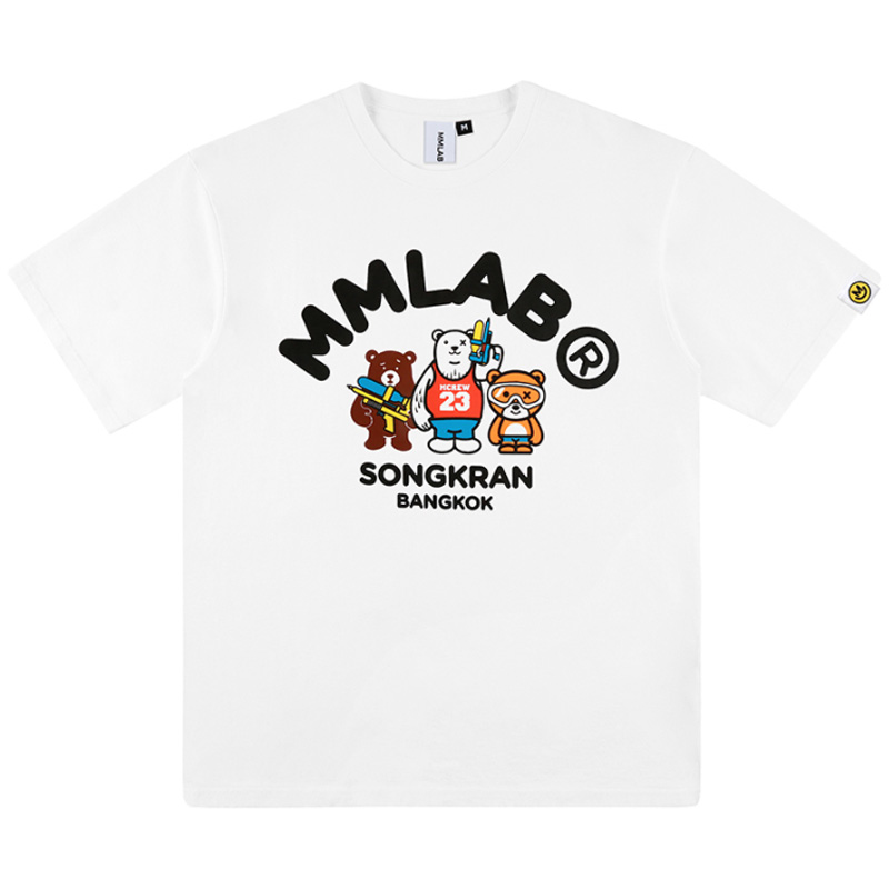 这是MMLABCREW曼谷泼水节限定的T恤,卡通的印花图案点缀,十分新颖独特,深受年轻人的喜爱。以简约的白色调渲染,结合优质的纯棉面料打造,让你舒爽轻快整个夏季。圆领宽松版型的设计,在炎热的夏日穿着舒适透气无束缚感。