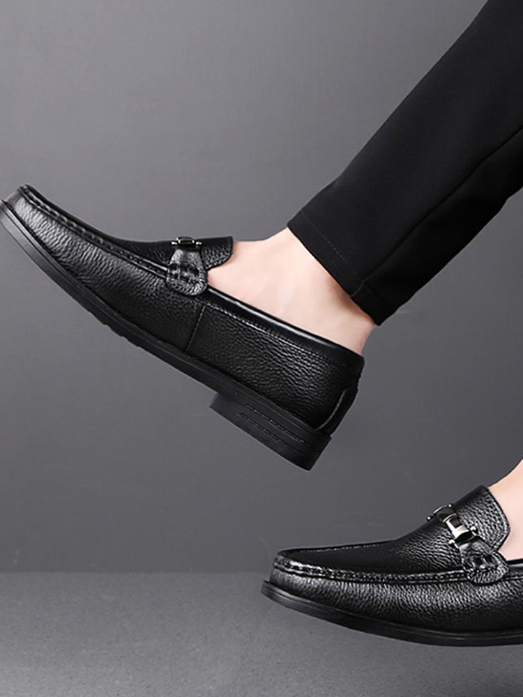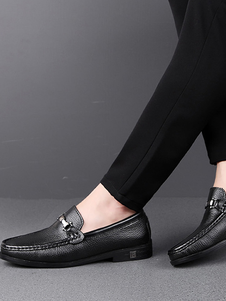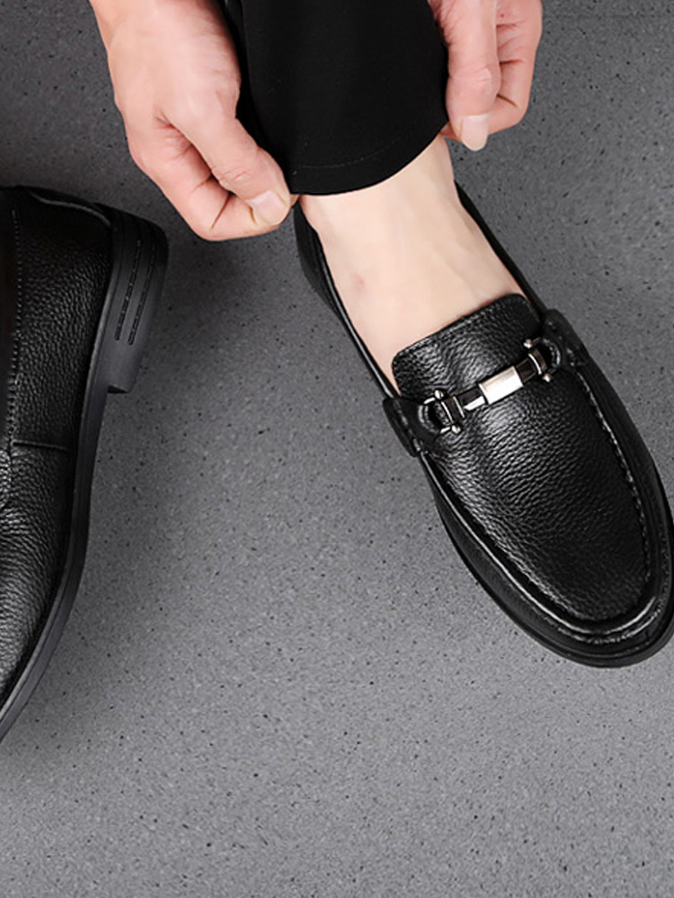 优质的真皮纹理,质感十足,结合纯色的色系,彰显出型男气质魅力。搭配上休闲小脚西裤出街,打造出迷人的英伦气息,时尚有型。