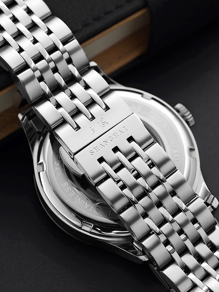 这款由经典时尚品牌上海出品的男士手表,夜光大三针配以条形立体刻度,实用双历显示,豪放中带有男人的柔和细腻。