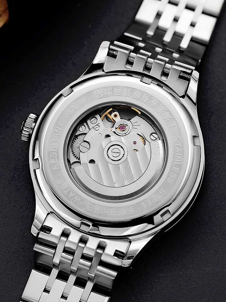 高硬度蓝宝石表镜,316L精钢表带,配合全自动机械机芯,显露品质追求。