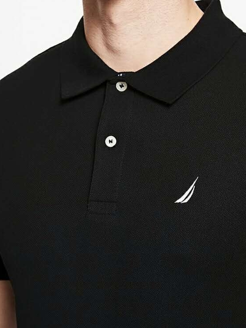 polo衫早就不是无趣和呆板的代名词,而是时髦和绅士的代表。简洁的黑色搭配袖子处的白色条纹,整体的层次感突出。