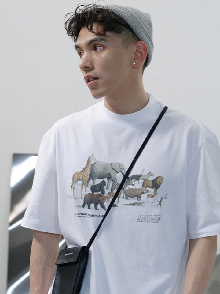 此款男士短袖T恤采用纯棉料制作,手感柔软穿着舒适透气。短款版型休闲十足,纯色版面添加个性字母印花,凸显时尚潮感。圆领设计简洁,柔和弧度体贴颈部,且便于搭配。整体做工细腻,走线流畅。基础版型设计凸显极简主义的时尚魅力,成就舒展自如的随性风范。别致个性的印花图案点缀着衣身,为T恤带去一丝俏皮的气息。经典圆领设计,更透射出穿着者率直与个性,举手投足间尽显亲和魅力。