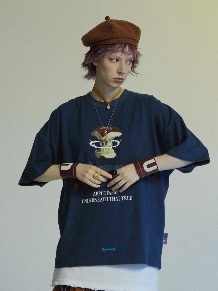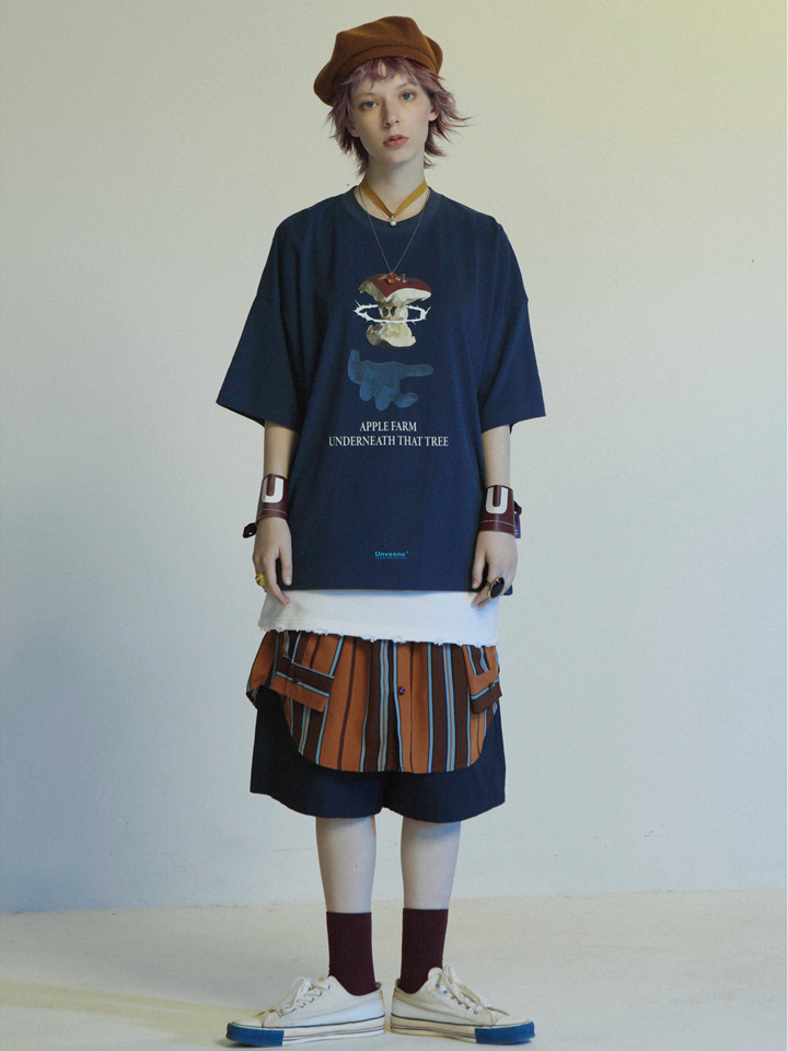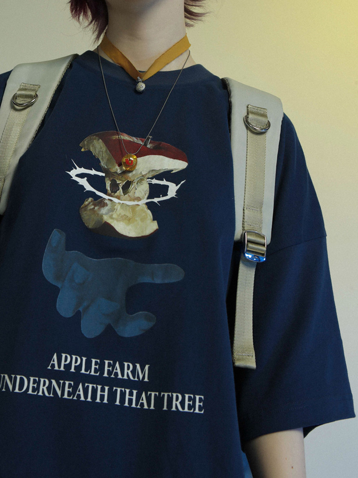 此款T恤在原本枯燥乏味的纯色衣身上,加入了自带魔法神秘气息的苹果印花装饰,创意大胆新潮,风格潮流复古,彰显自我个性。