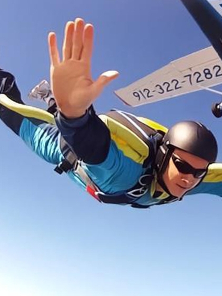 这款跳伞培训有2天左右的地面培训,1-3学阶单人跳伞3次 ,有两位教练陪同。