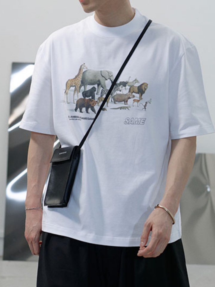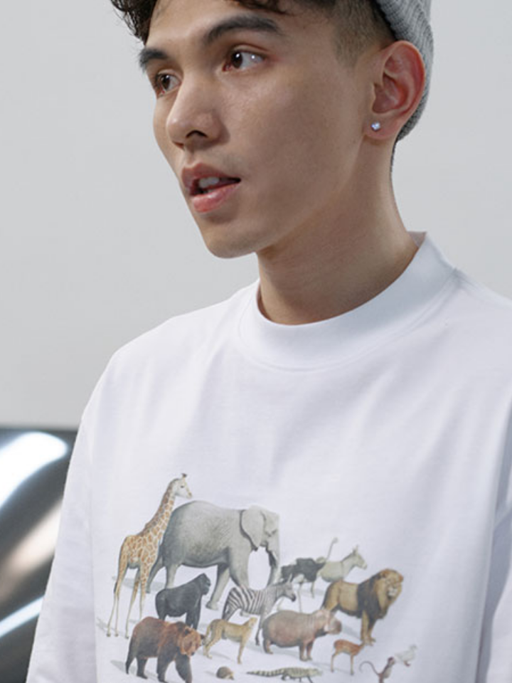 印花吸睛散发文艺气息的一款短袖T恤,经典的修身圆领版型,耐看百搭,搭配上动物图案印花,一瞬间就使得T恤充满个性。