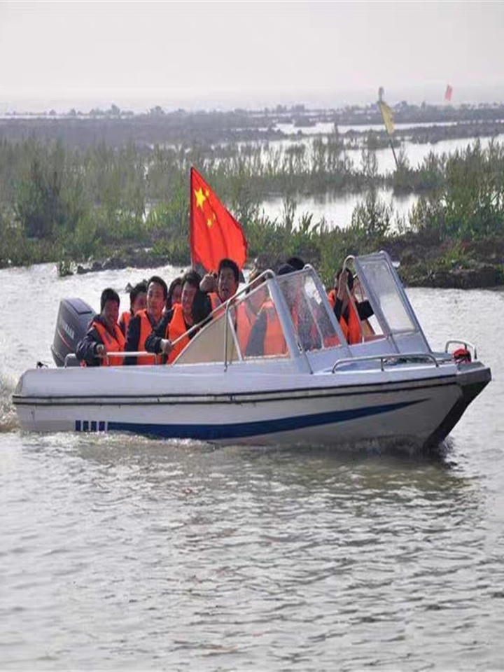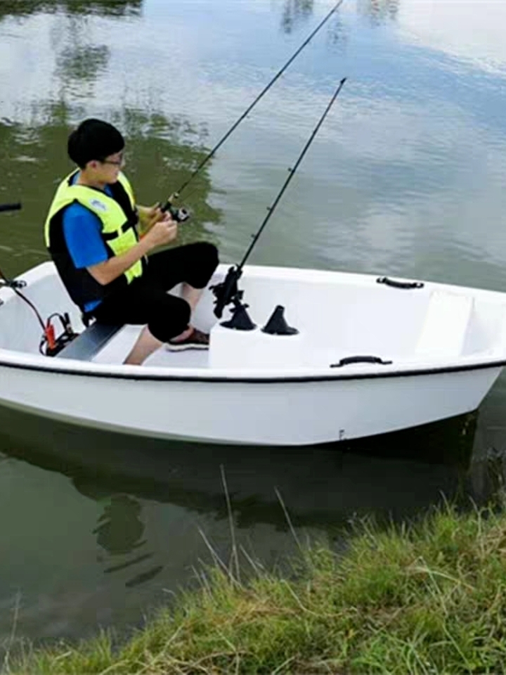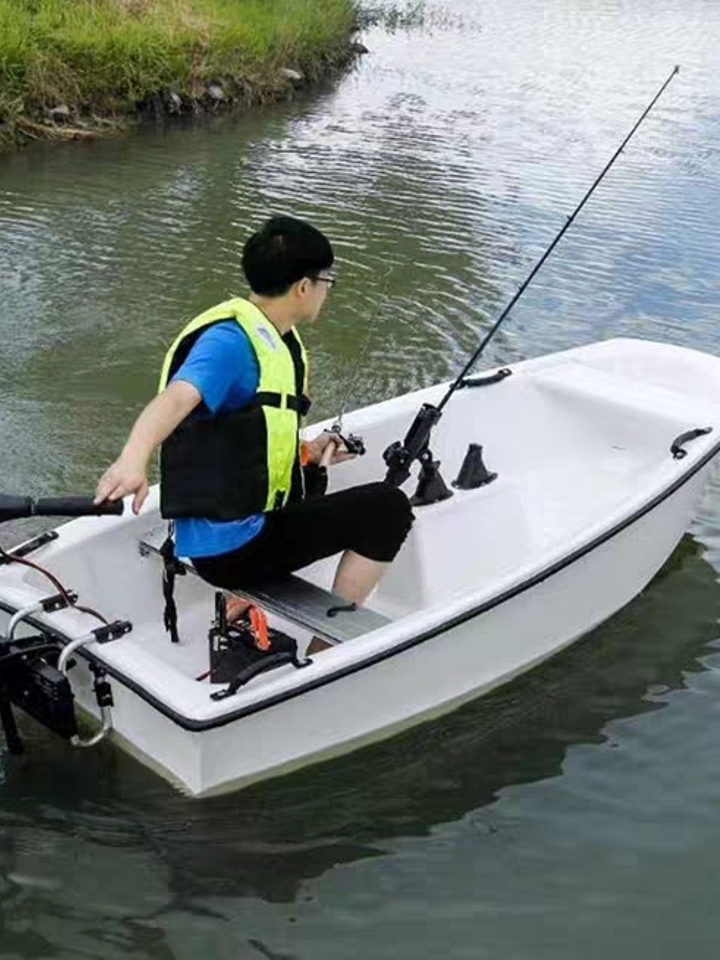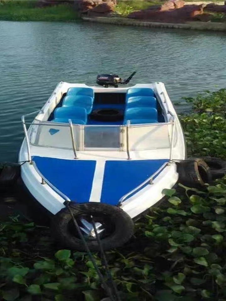 采用玻璃钢材质船底,耐磨耐冲撞。船头带有绳钩,可用于牵引固定。船尾配有马达挂板,可使用船外机