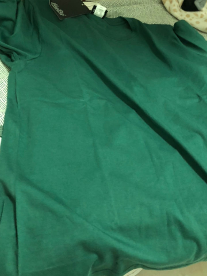 这款墨绿色短袖体恤做工精致,布料柔软细腻不易变形。颜色百搭各种款式服装,穿着宽松时尚,彰显嘻哈风格酷帅气质。