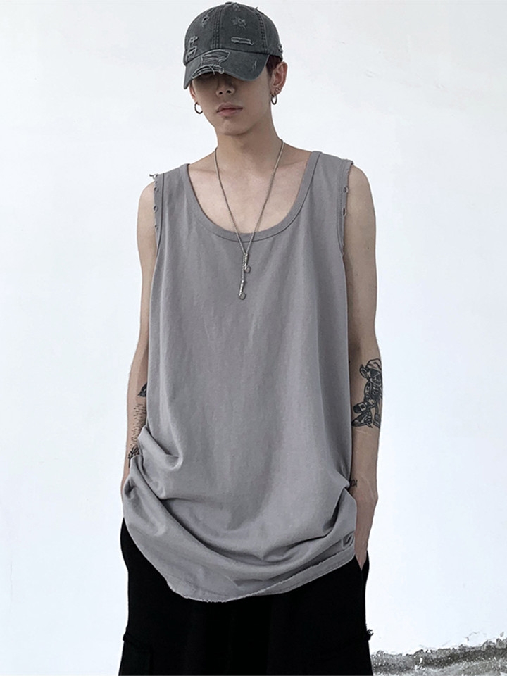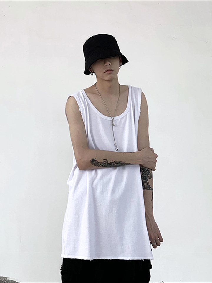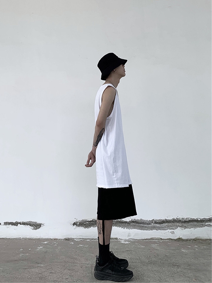 清爽的无袖设计露出手臂,简简单单才是不简单,轻松百搭不同的风格,素净又大方的圆领设计舒服贴心。宽松直筒,休闲感十足毛边的下摆设计,穿出别样的韵味。