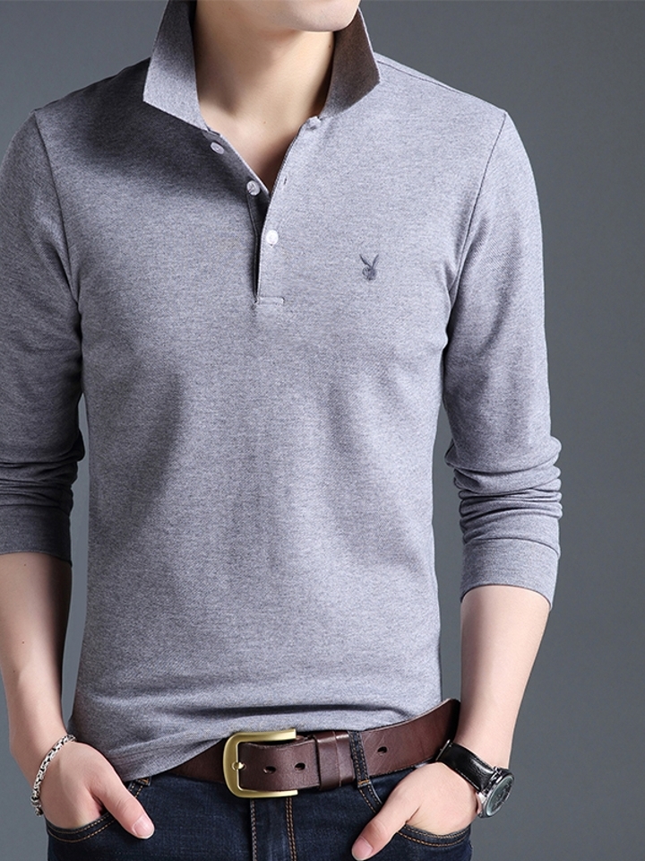 POLOT恤,冷色调的选择可以让人显得瘦一些,翻领的运用和纯色的板式无疑是成功的,配合着冷色调,显得格外的干净,给人感官上一中安静的体验。休闲中不失正式,很是帅气。