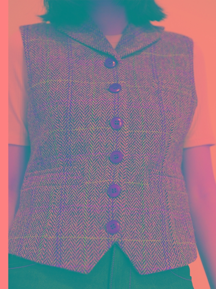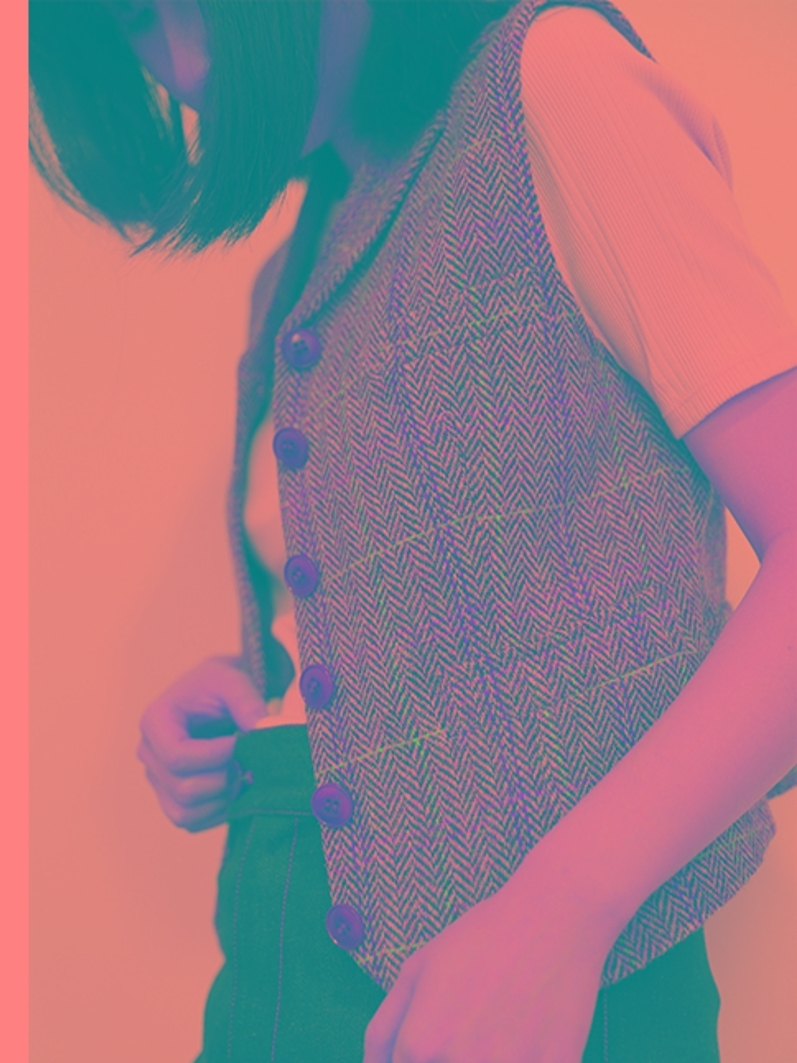 马甲外套突显出让手臂线条更显纤细。小翻领的样式很显帅气,修身的版型够露出窈窕的曲线美。一排扣透露出简约的既视感,粗花呢的面料给您以厚实的穿着感。