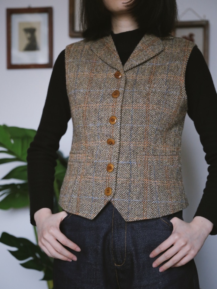 AnnualRing是一个秉承美式复古风的原创品牌,此款马甲前身采用460g蓝色人字纹粗花呢面料,融入平驳领设计增加了层次感,视觉效果更为出众。后方11oz新疆棉马丁布,与传统帆布相比触感更为细腻柔滑。抗静电宾霸里布,与进口牛皮编织扣,从细节