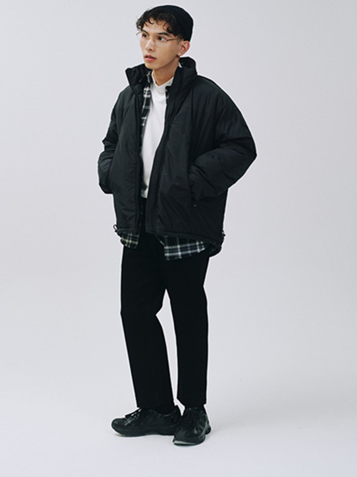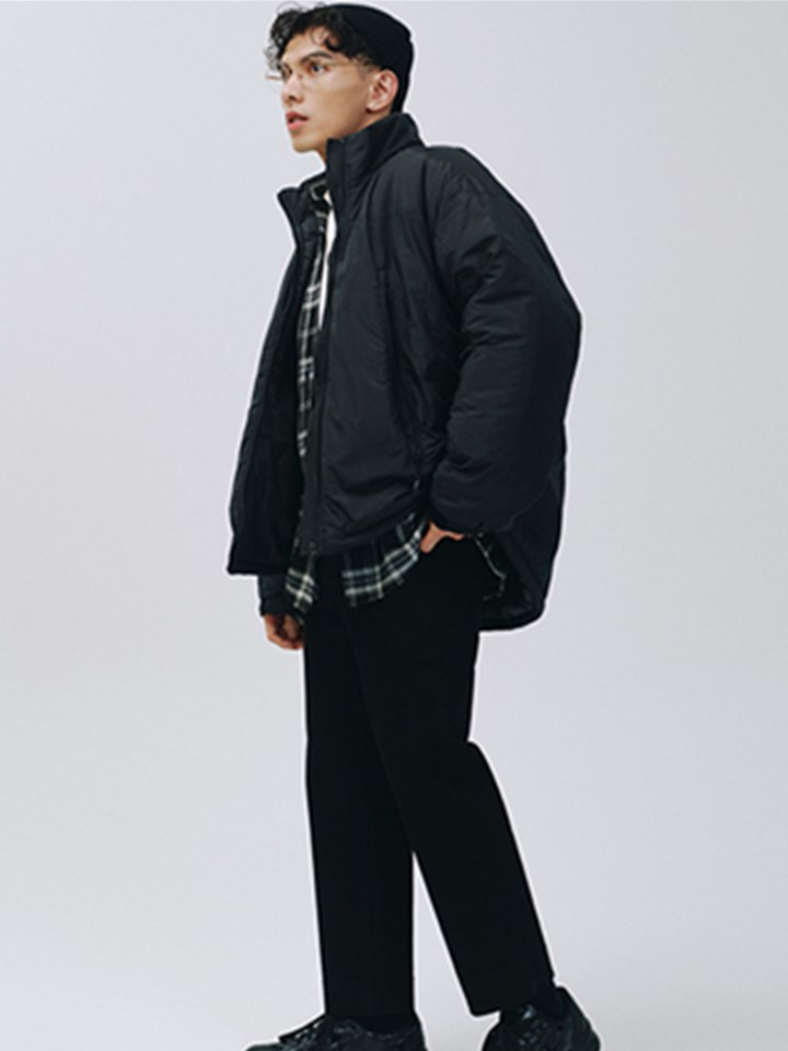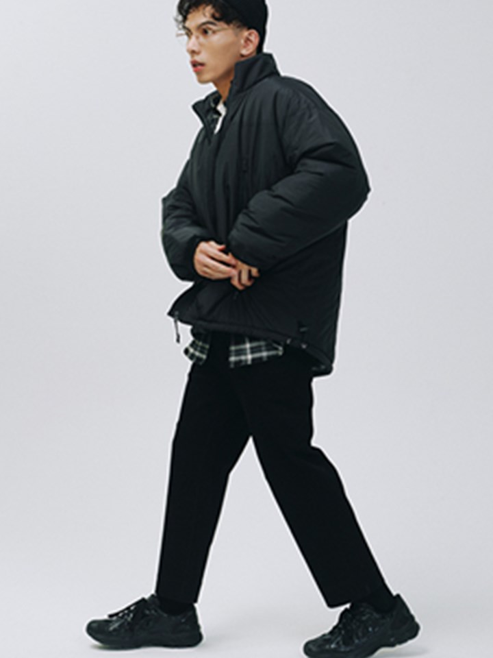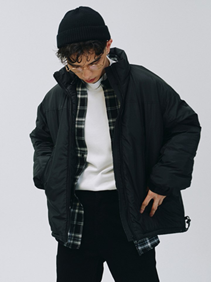 这款棉服采用纯黑色调,显现出时尚帅气的风采。