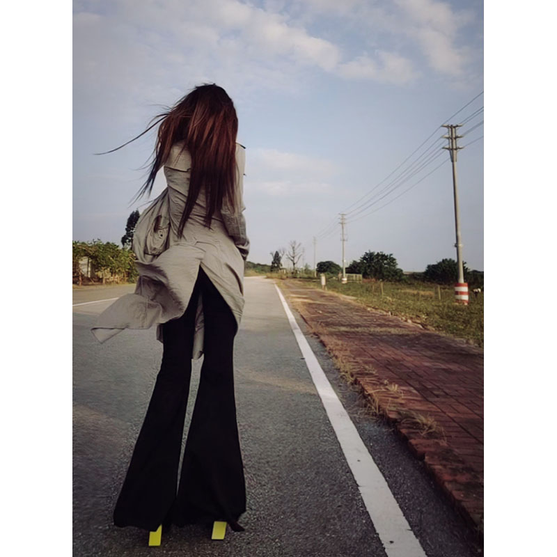 高腰的设计,拉长腿部线条,显瘦效果很好,高腰的版型,很显高挑,修身的剪裁,修饰腿部曲线,上身很有范。