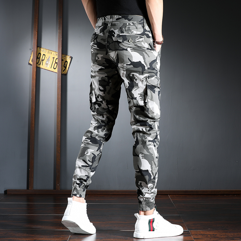 直筒设计,打造嘻哈风格,多口袋设计,美观又实用,束脚设计,修饰腿型。