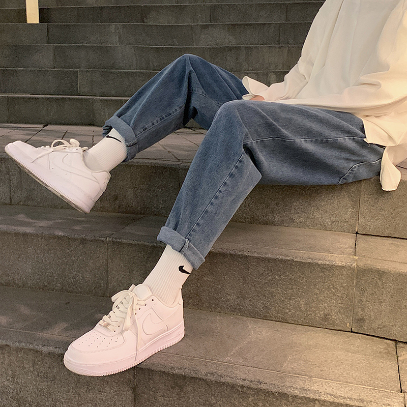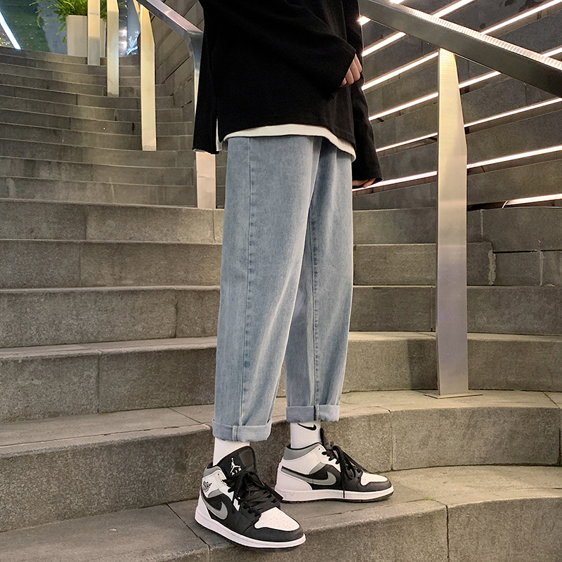 高腰设计,拉长身材比例。高腰牛仔裤,显瘦显腿长。直筒裤型,修饰腿部线条。