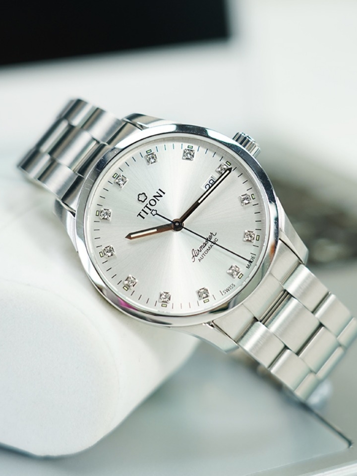 简洁的白色表盘呈现,细致的纹理经得起任何挑剔的推敲。条钉刻度与罗马数字时标相间,再加入大三针,处处体现品牌对细节的追求,带来新颖的读时视野。背透表盖设计,轻松洞悉机械运动之美。