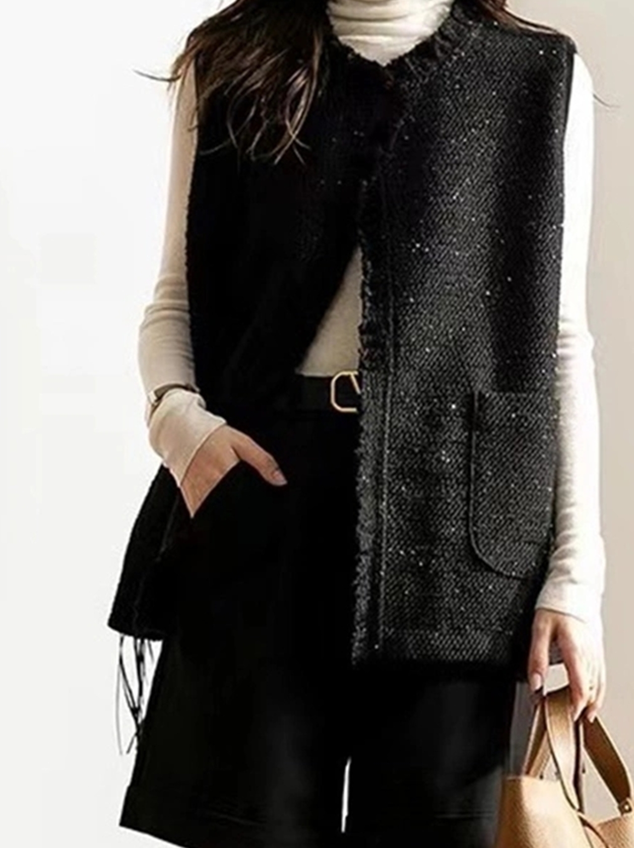 高JI定纺花呢,编织纹理,纵横交错,内里织入金丝点缀,轻奢细闪,显品质。