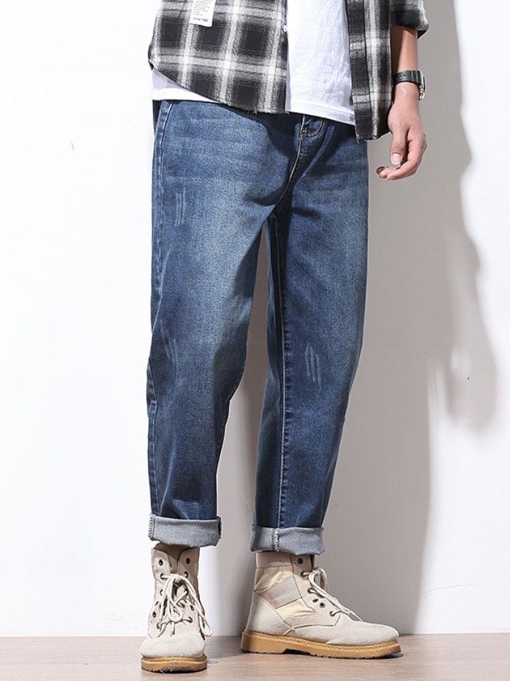 裤子用了较为深色的牛仔面料,加上磨白破洞的细节处理,整体展现了复古时尚感。宽松的版型剪裁,舒适不紧绷,简约又大方。彰显个性的印花设计,从视觉上更显得醒目精神,尽显街头不羁风。
