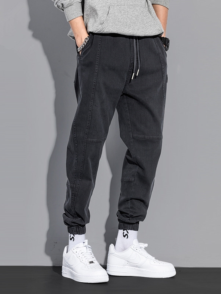 斜切与膝盖部分的缝合线让裤管呈现出分段的效果,为膝盖的弯曲留出空间让裤子在运动的过程中不会阻碍身体的运动,舒适度倍增。