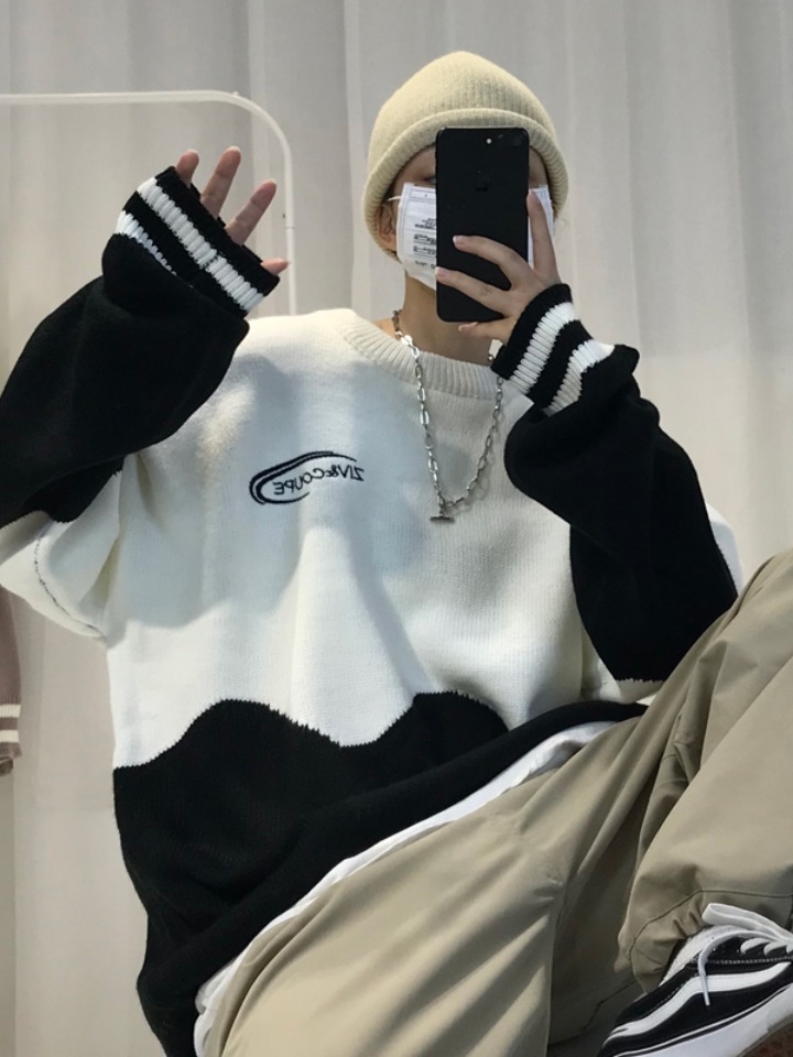 纯色针织衫,上身显瘦,有股子暖男气息,做工特别细致的一款毛衣,手感非常棒,宽松的款式不挑身材,精选优质针织面料耐穿耐看,单穿或者冬天作为内搭都很好穿耐看,搭配大衣温暖有范,加上牛仔裤利落有型。