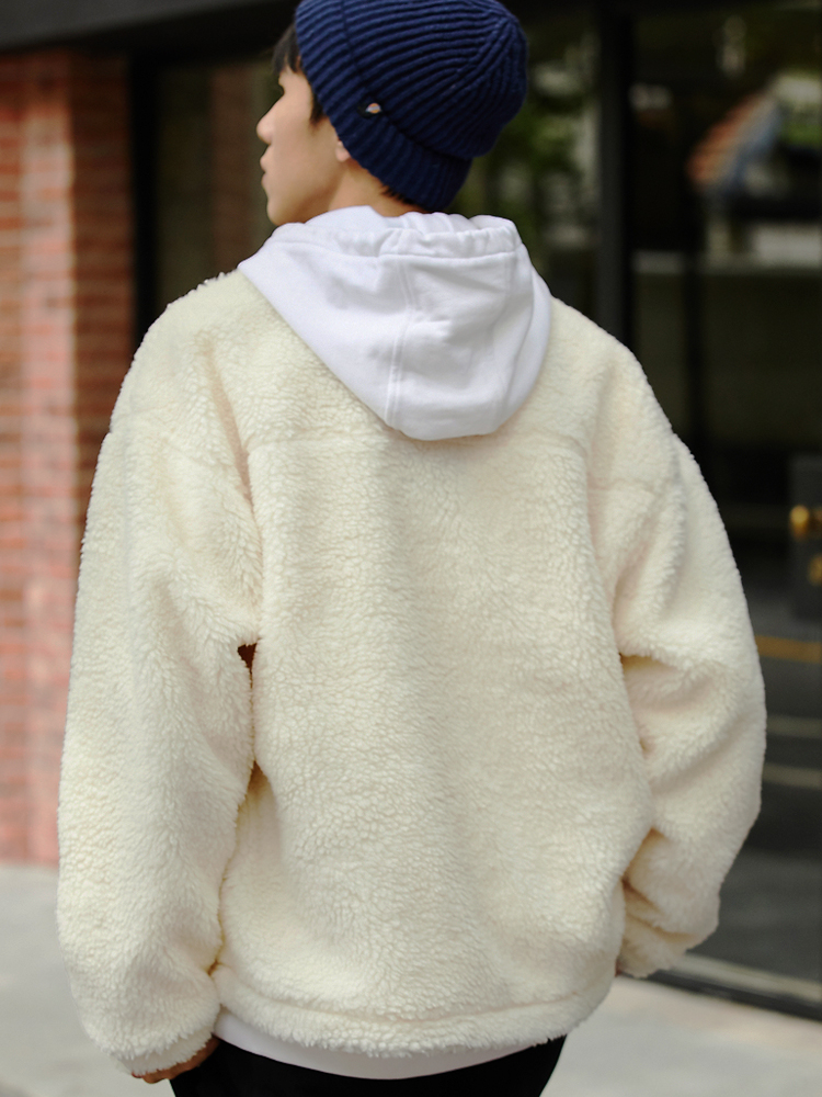 羊羔绒夹克,连帽设计,抢眼又不会落俗,奶油色经典耐看,小宽松的版型,上身帅气有型,厚实的面料,保暖又舒适。
