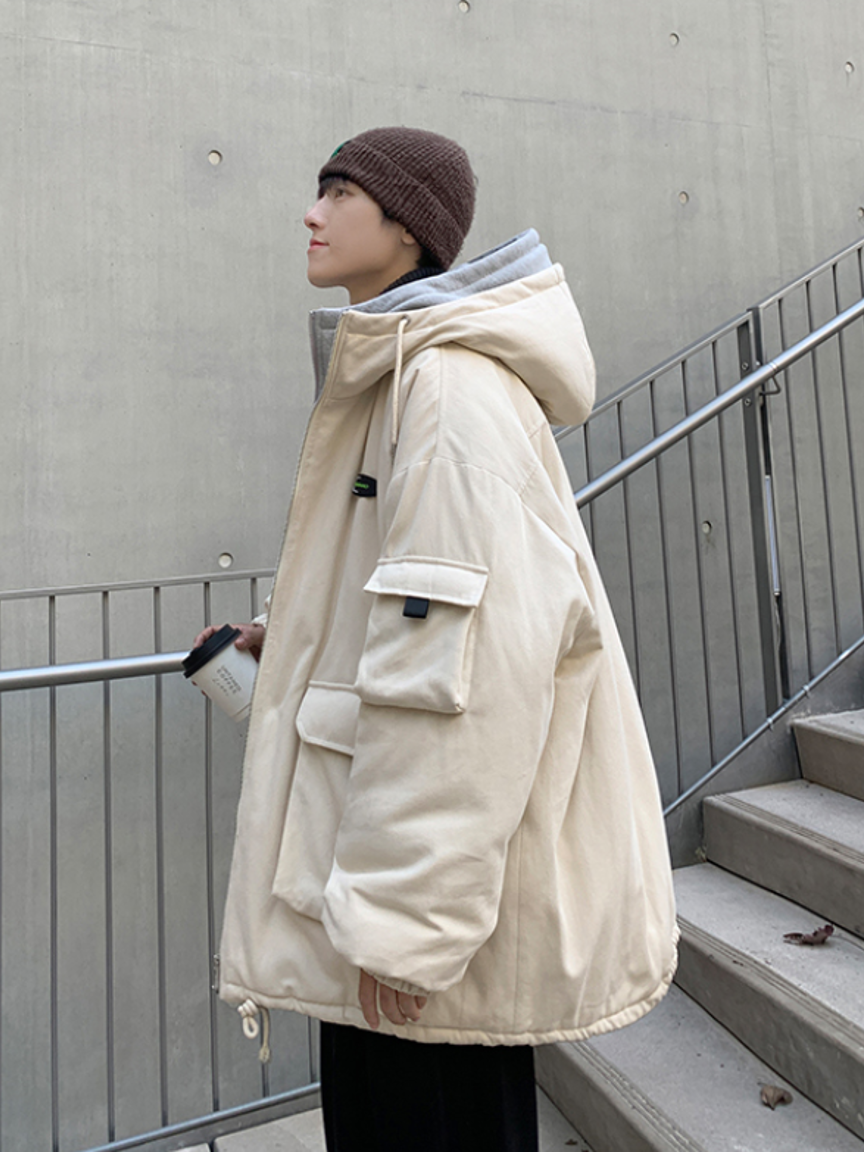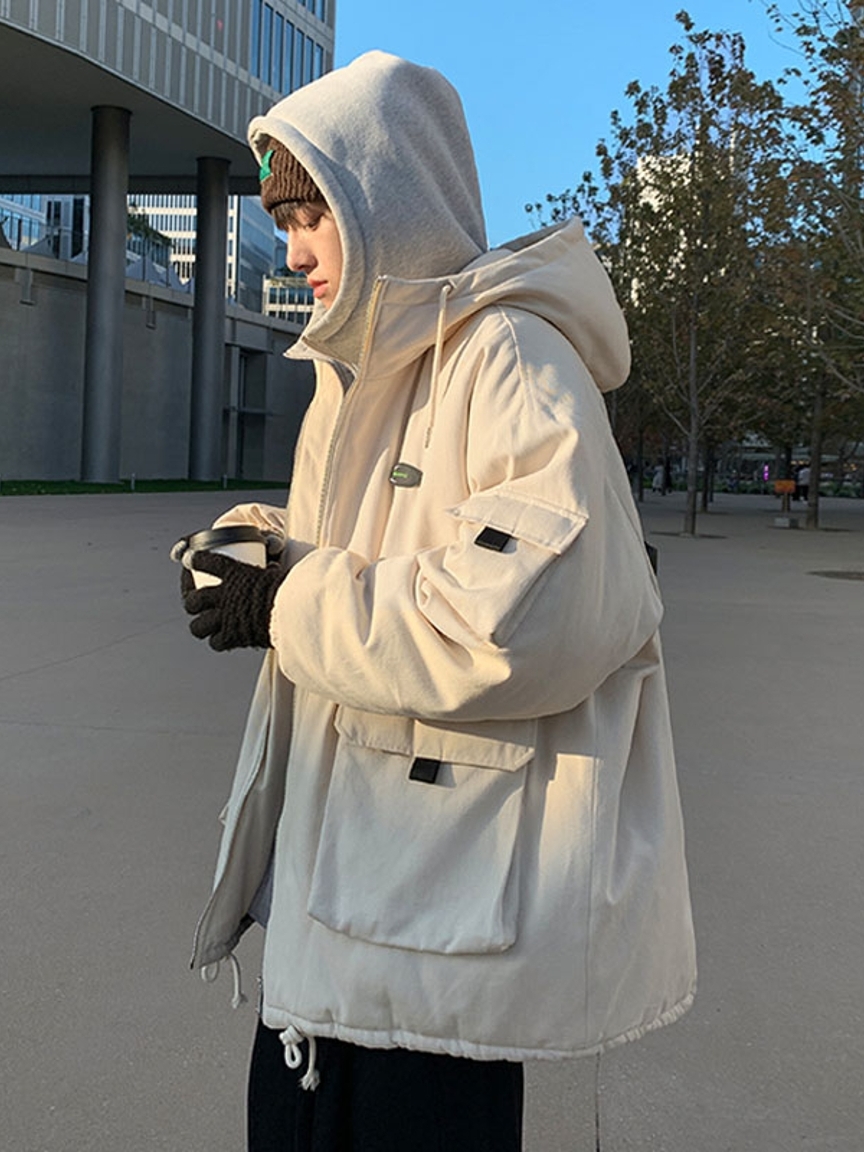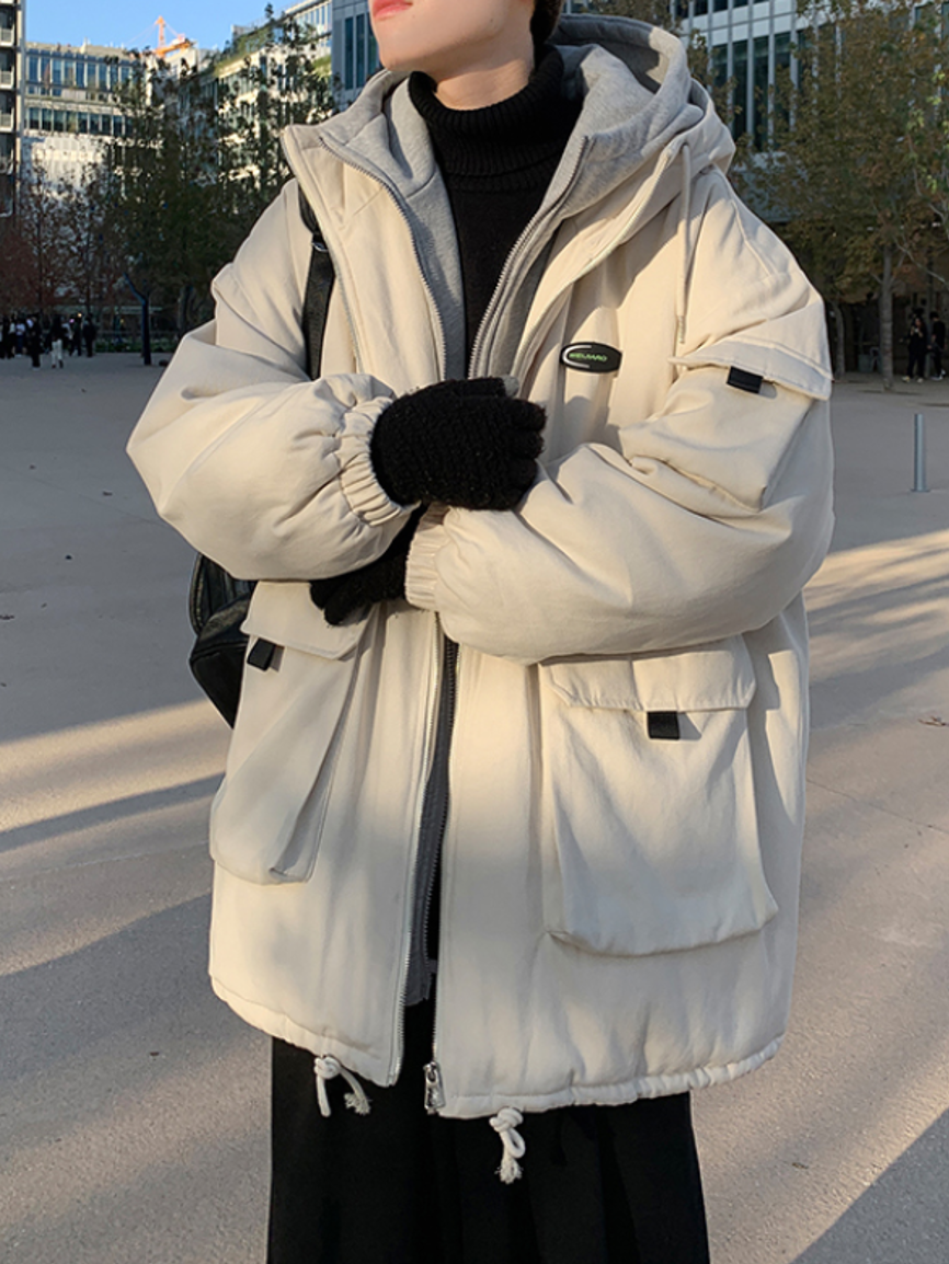 这款棉服的连帽和门襟做了撞色拼接的设计,具有很强的层次效果,也给人一种两件套的既视感,穿在身上很有范儿。