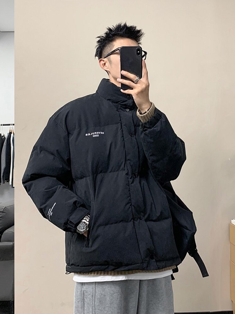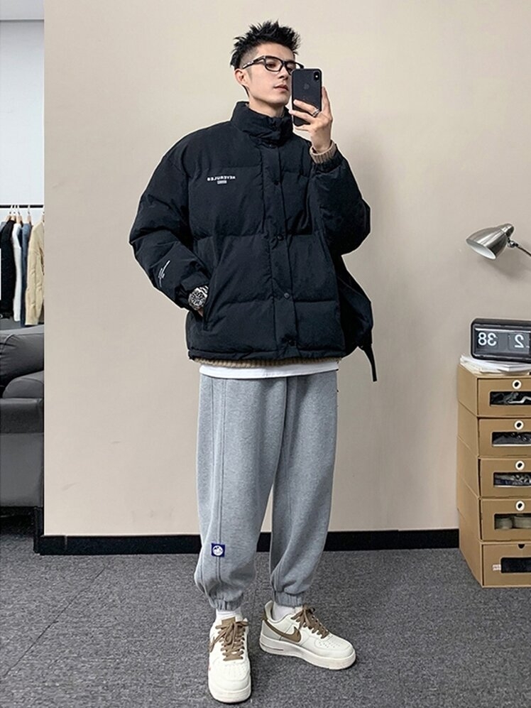 短款棉服不但具有良好的百搭性,还能在视觉上塑造出高挑有型的身材,搭配经典的立领设计,修饰颈部线条,十分显瘦。胸前撞色字母色剂装饰,丰富层次感,带来独特个性,彰显出品牌设计的匠心之处。面包服的版型设计,包容性强,尽显随性洒脱感,帅气潮味十足。