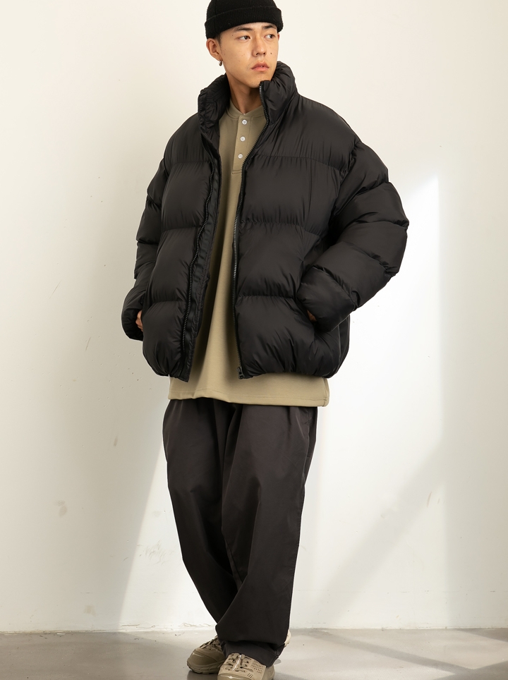 这件面包棉服让男生在冬季不再受到寒冷;外面超级温暖的色系,也让你的冬季装点得帅气十足;采用了立领的款式,具有实穿性,也有防风效果。