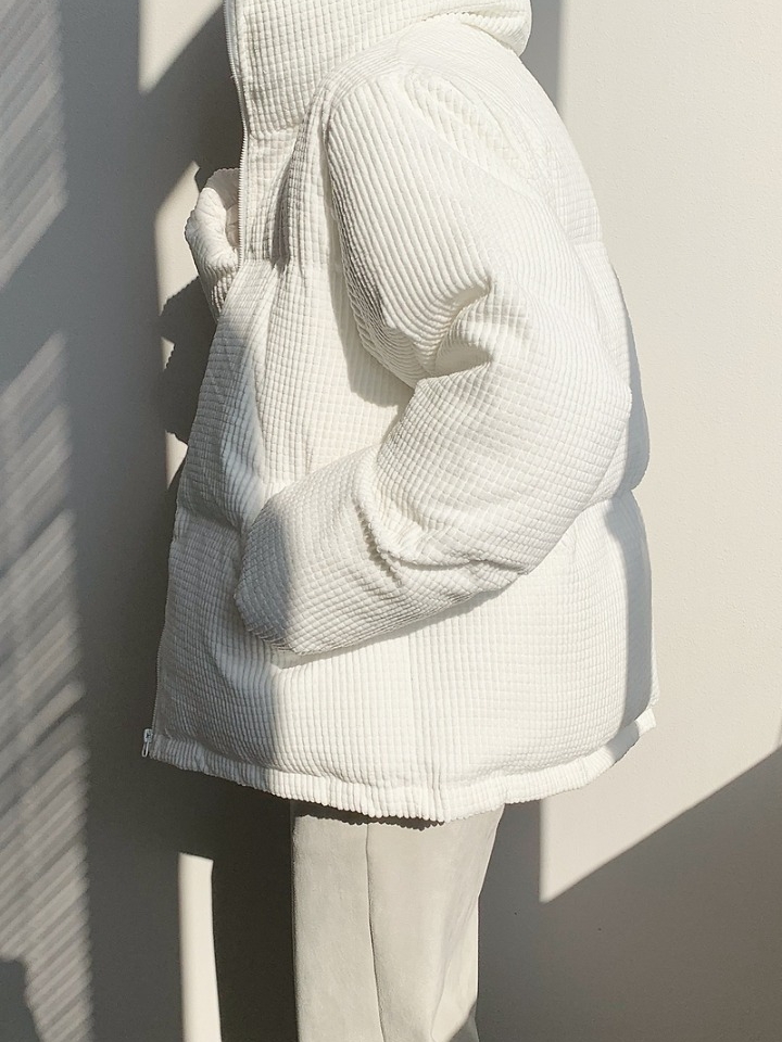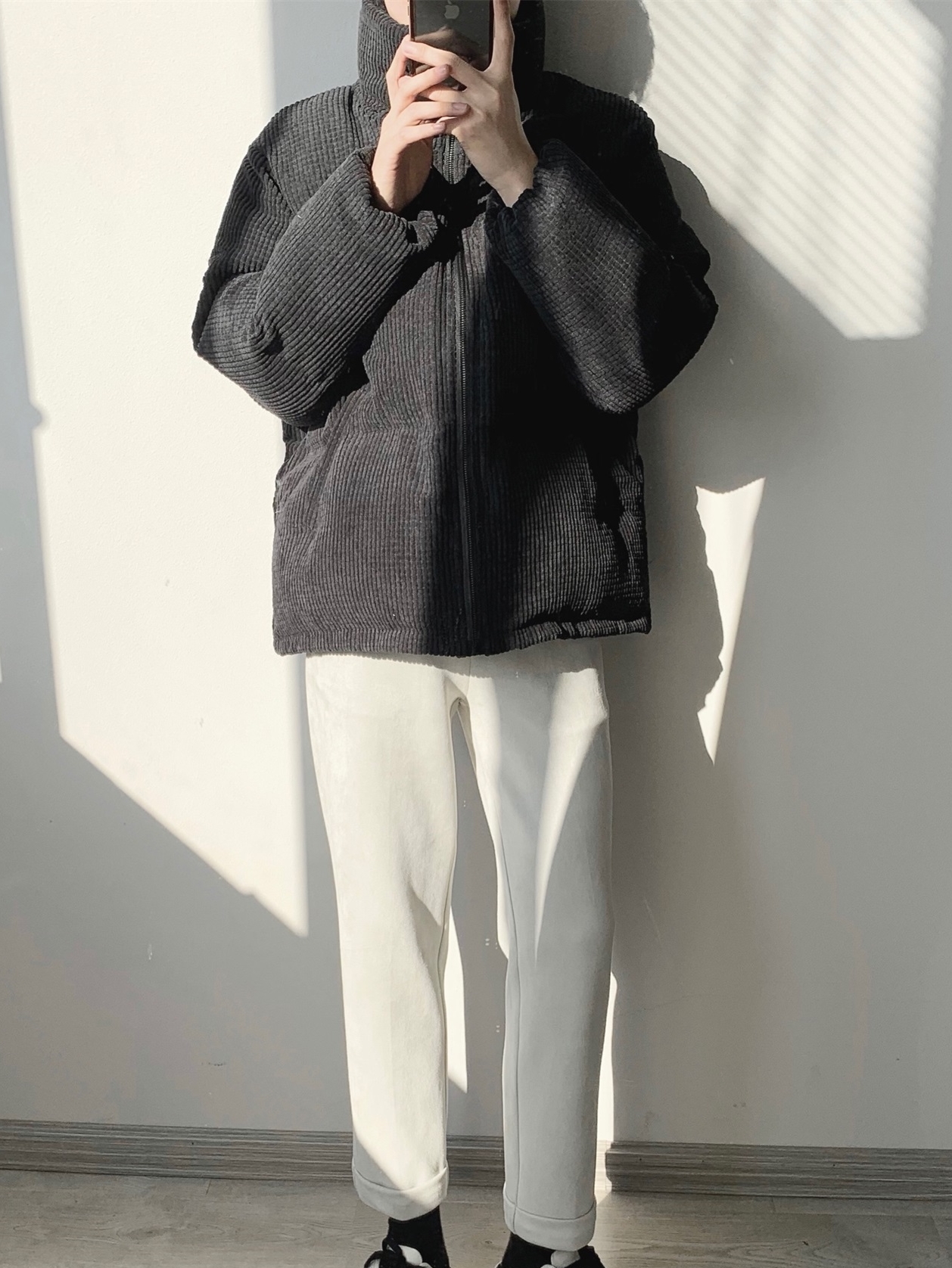 棉衣风格算是比较中性休闲的款,灯芯绒+连帽+工装版型,太帅气了!厚实保暖但是不显胖哦,袖口的设计是松紧袖口的,这样冬天就不会袖口漏风了哦。