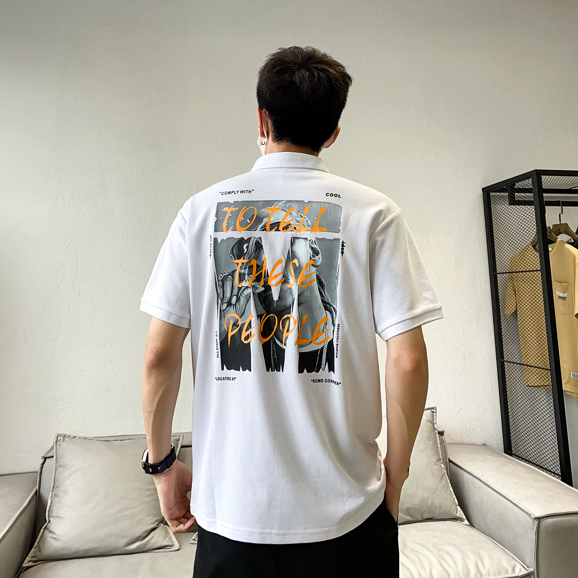 polo衫款式,休闲感十足,短袖设计,修饰手臂线条,翻领设计,彰显绅士气质。