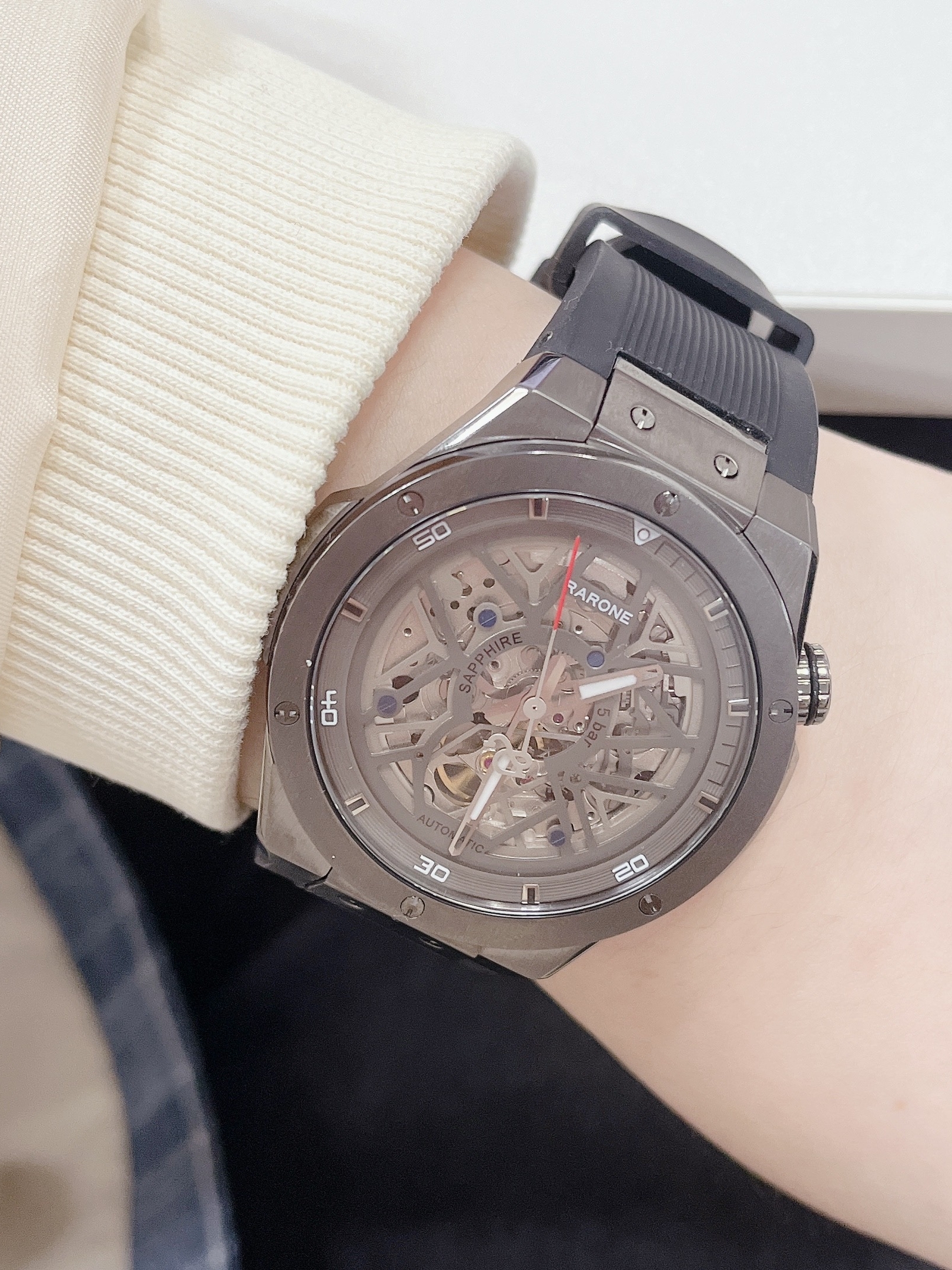 此款复古机械表采用缜密复杂的镂空机芯,复古时尚的罗马字钉,阶梯型多层立体设计,彰显出机械感与艺术感并存的格调。