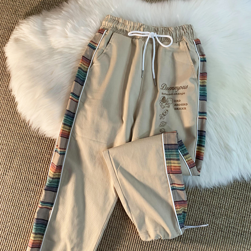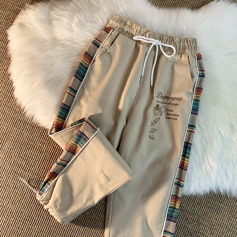 复古风设计,时尚又百搭,宽松版型,穿着舒适自在,撞色拼接设计,个性时尚,直筒裤型,修饰腿部线条。