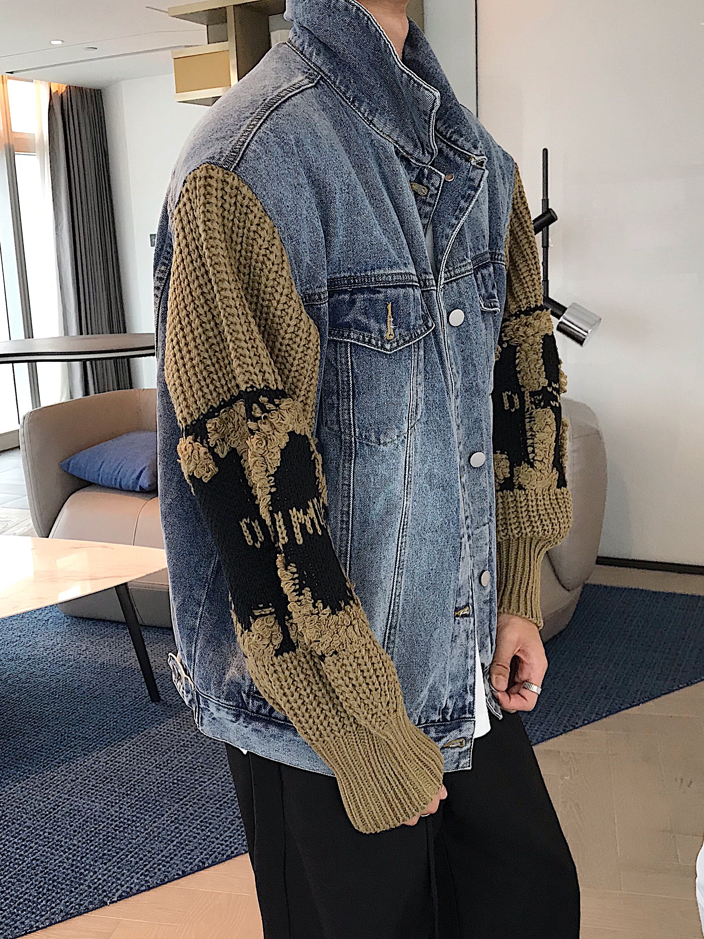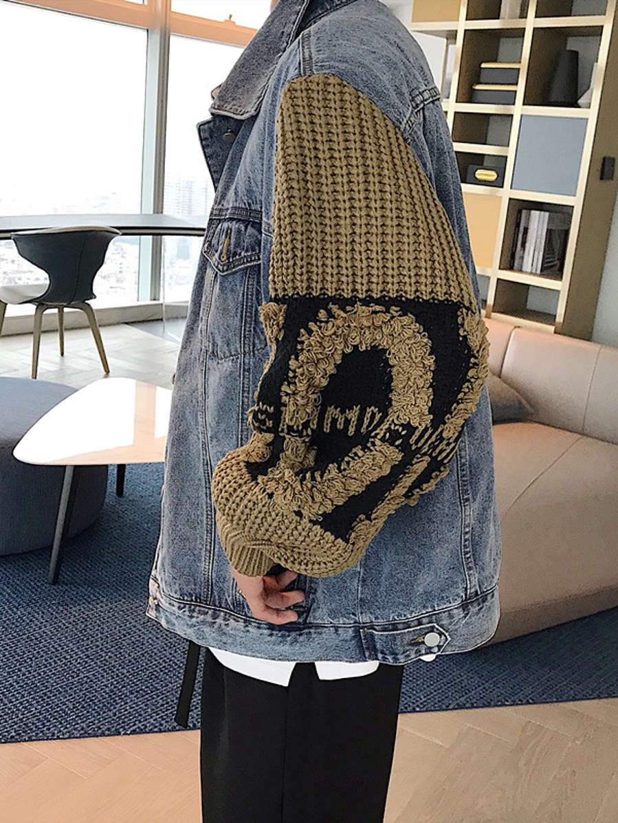 袖子采用毛线针织拼接,具有很强的设计感,和穿出效果,结合撞色的字母和花纹点缀,轻松就能为你赚足回头率。