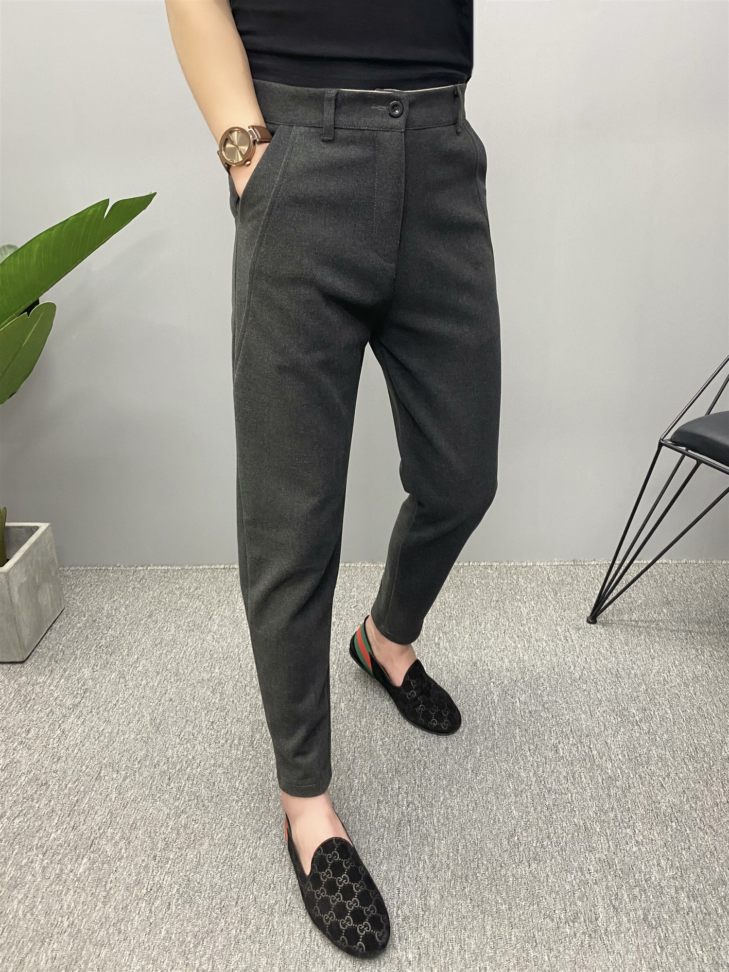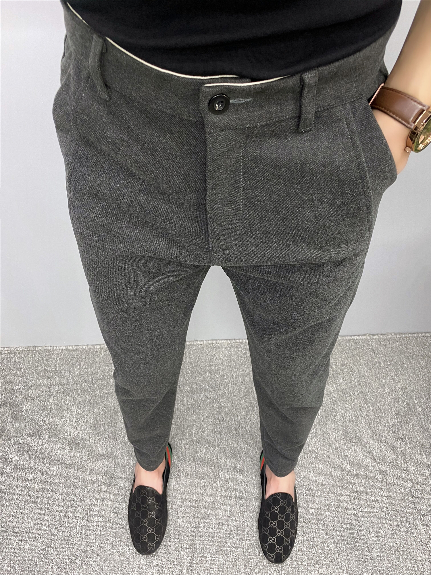 这款休闲裤是修身的版型,穿起来很显瘦,而且还很百搭,搭配一件T恤,就可以美美的出门了。
