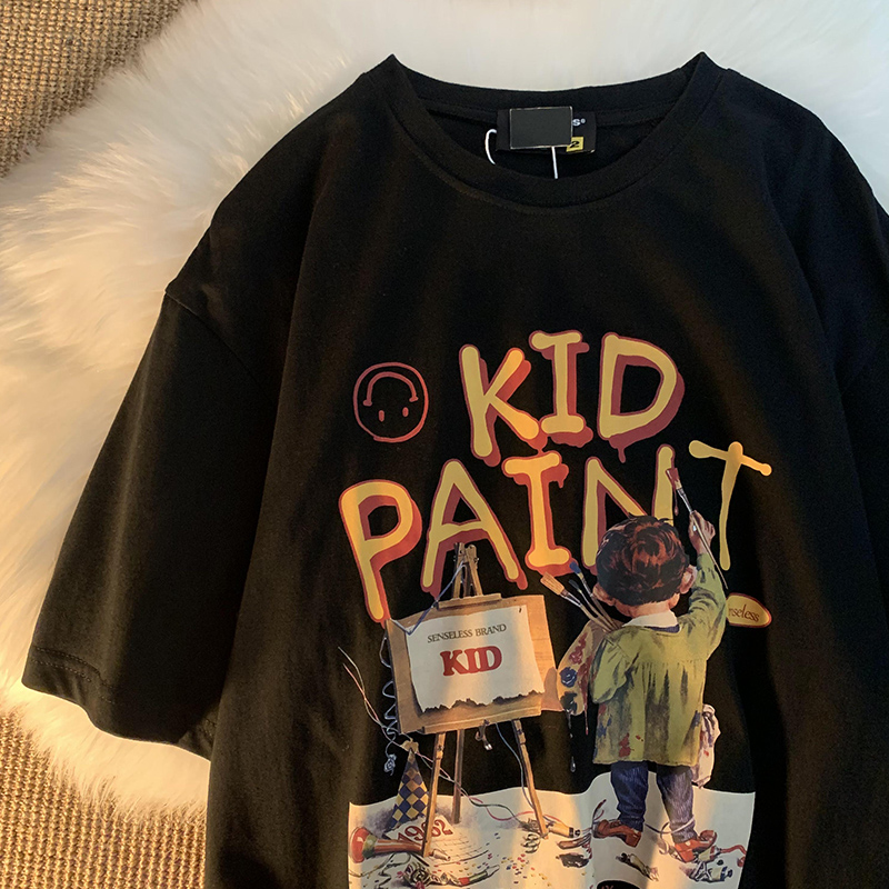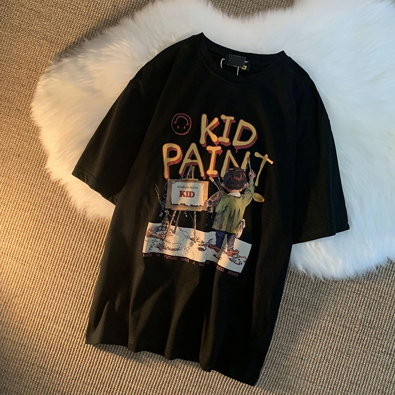 宽松t恤,让你轻松驾驭。印花图案,彰显时尚个性。半袖设计,修饰手臂线条。