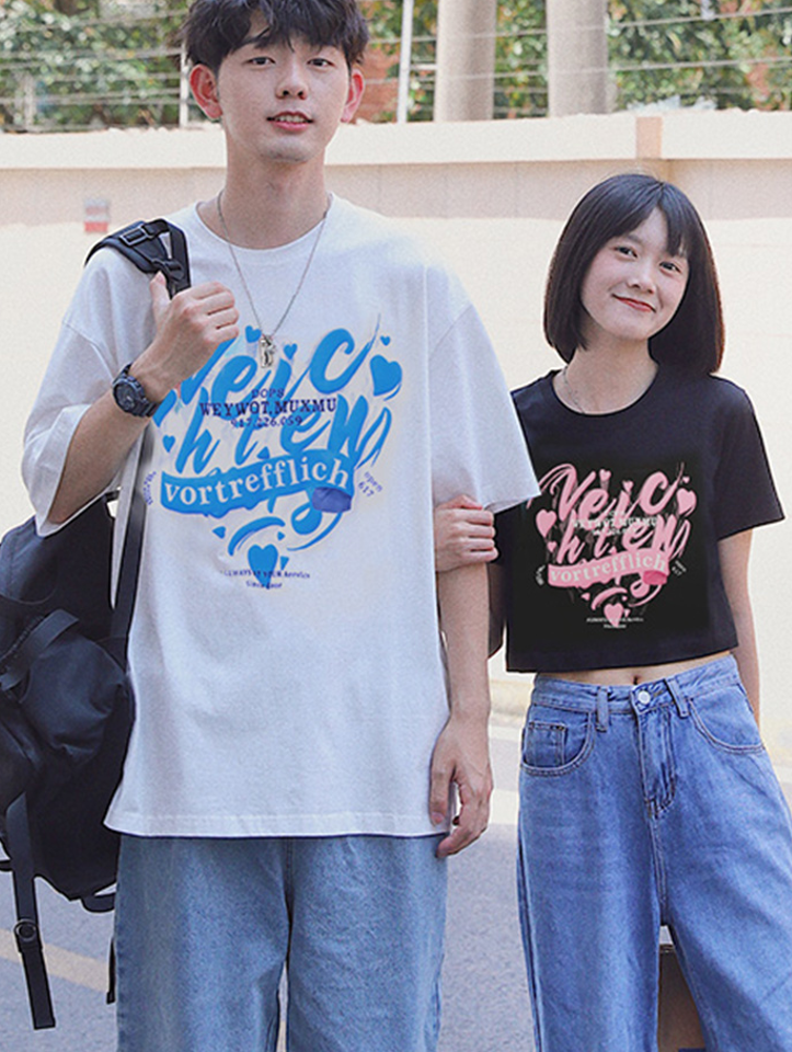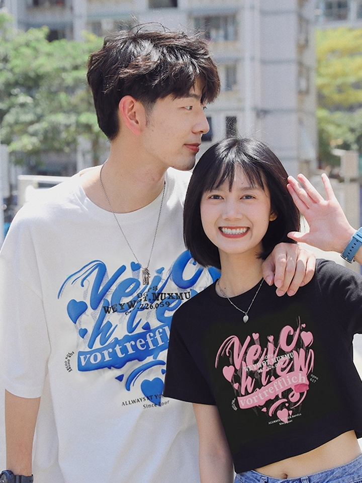圆领宽松版型,时尚个性的圆领设计,经典大方,搭配阔腿裤,宽松休闲,发泡爱心的印花设计,时尚雅致,菱形宽松的版型,修身显瘦。