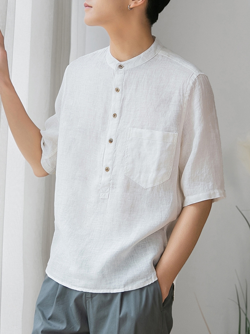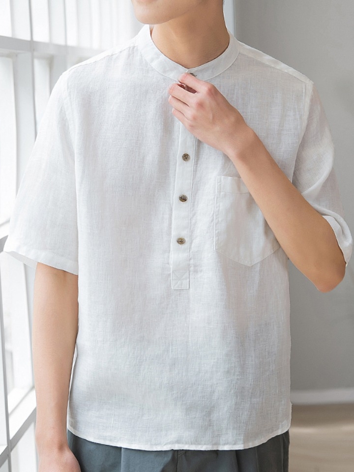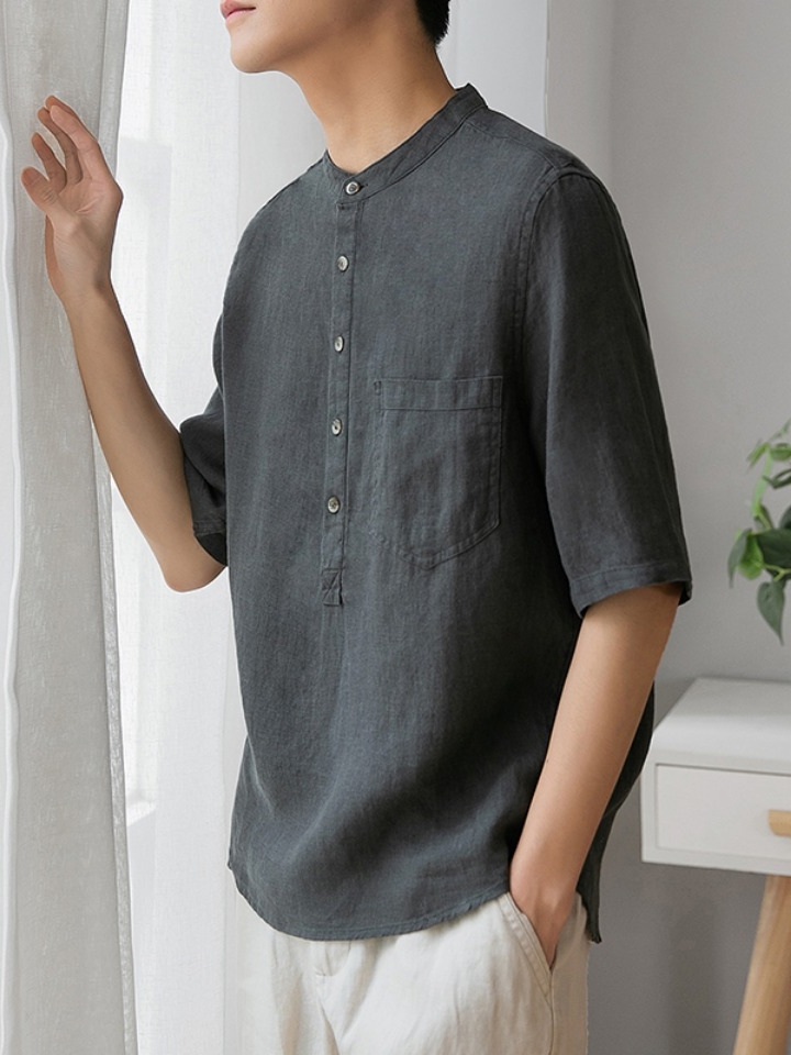 中国风纯色棉麻男士短袖宽松立领衬衫,青年亚麻七分袖衬衣,修身衬衣 高档时尚, 不变形不起球,完美质感更耐穿,穿上让你看起来精神利落有活力。