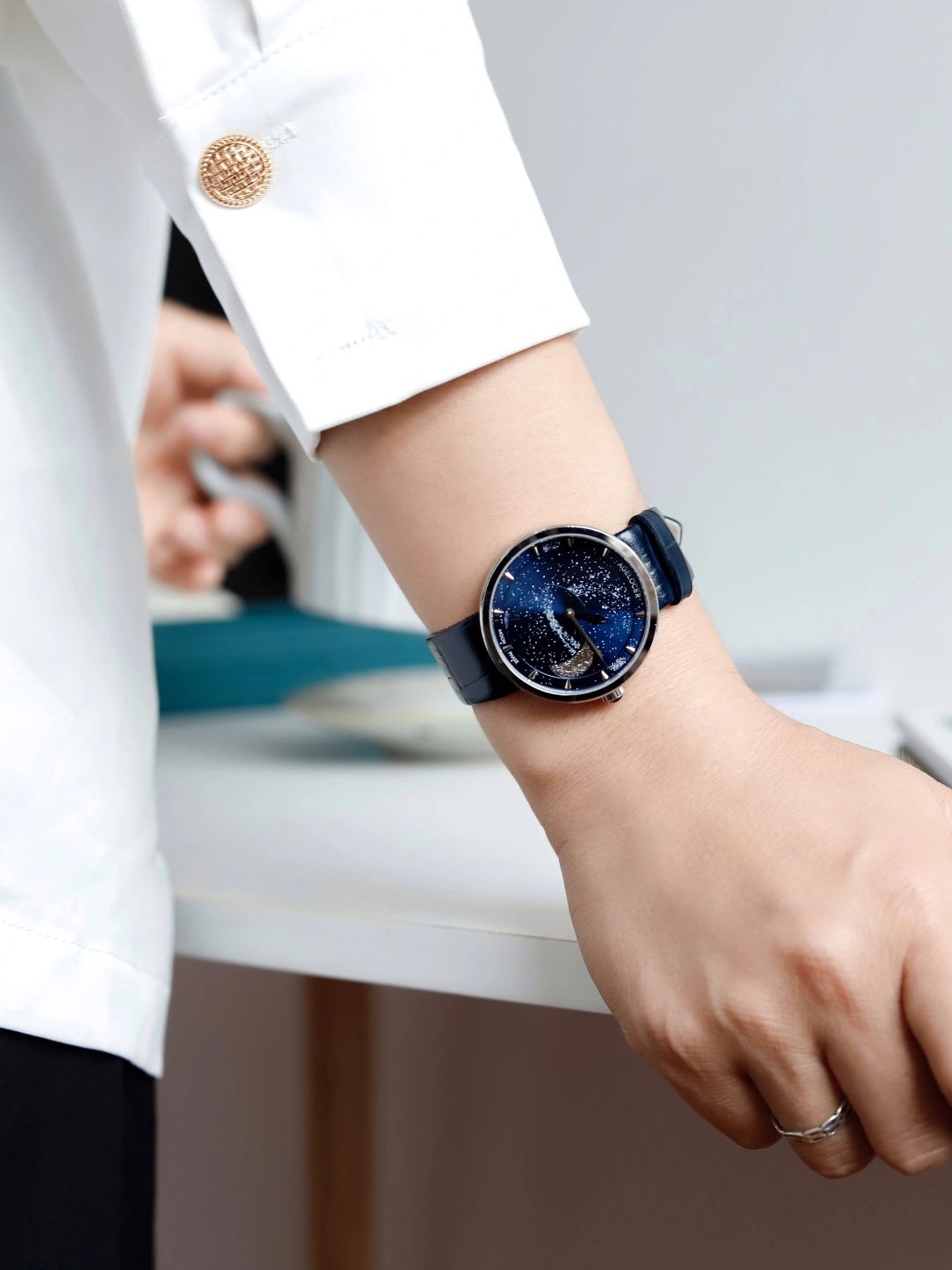 星空的表盘自带一种深邃的格调感,采用了304不锈钢,更具良好光泽感,进口的日本石英机芯和电池